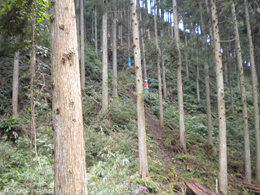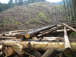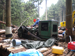 長丸太を索道で搬出・棒切り