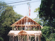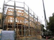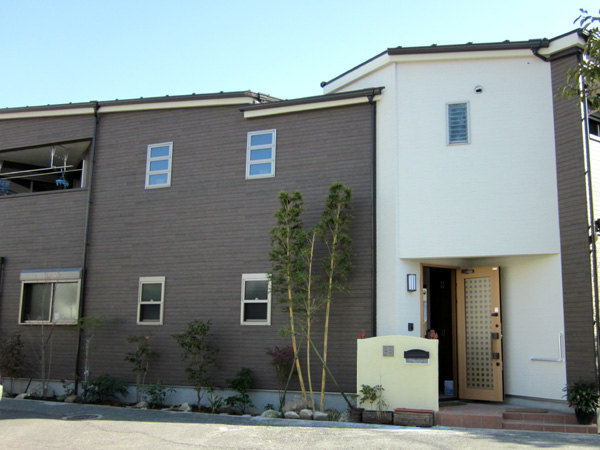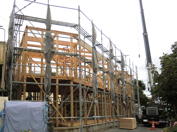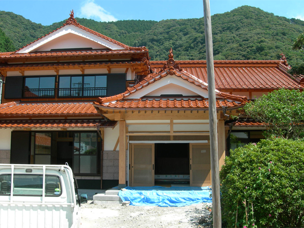 築130年の家を解体。製材所の古材製材の技術を生かして、家を新しく蘇らせました。 古民家の梁部分を製材所で加工し新築の家にたくさん再利用しました。 赤い瓦屋根の外観は、和風建築をそのまま残しています。